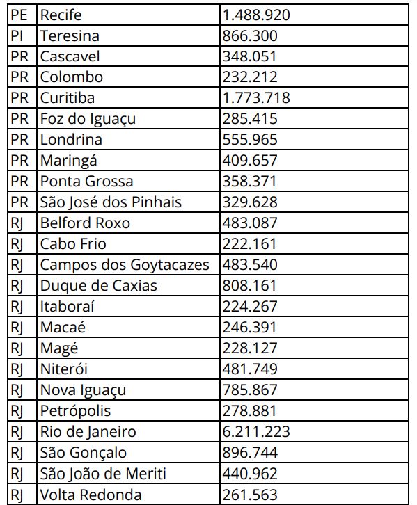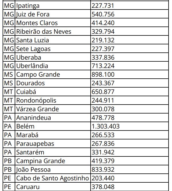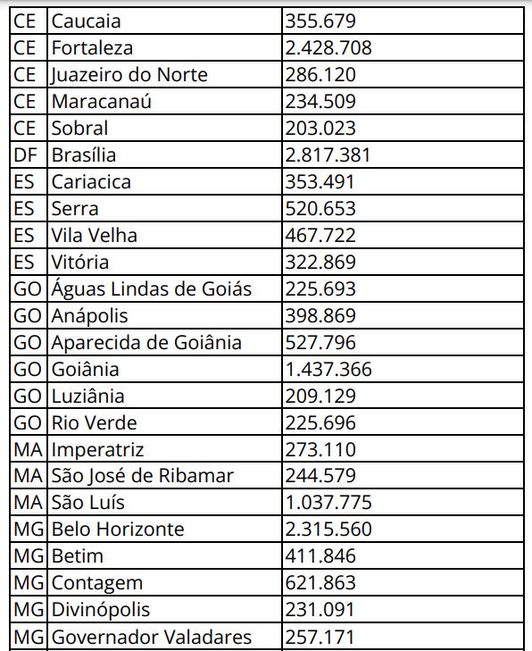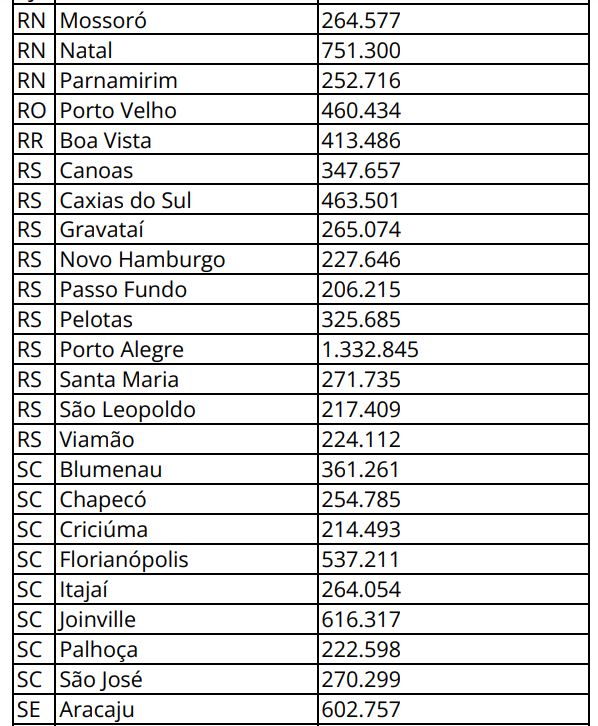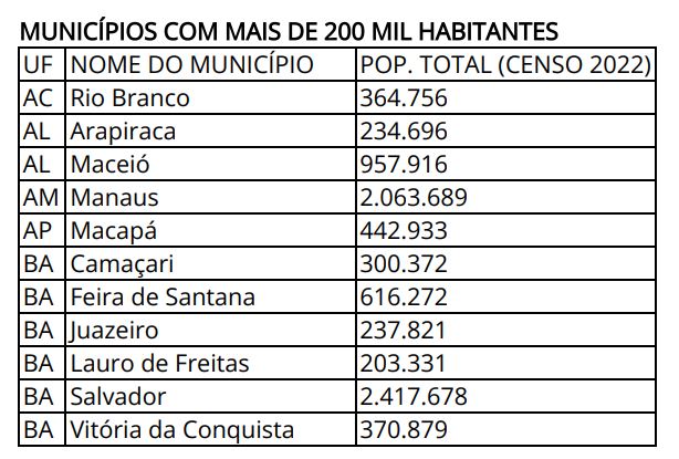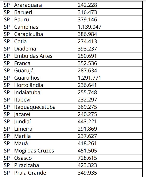 Estabelece a relação de municípios do Brasil com população igual ou superior a 200.000 habitantes para efeito de pagamento de diárias, no âmbito da Administração Pública direta e autárquica do Estado de São Paulo.